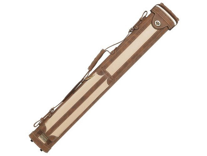 The Elite Vintage case is available in Chestnut/Cream and Black. This oval leather case holds two butts and two shafts. The pocket is 15.5 inches long & comes with a shoulder strap. This case can fit up to a 31″ shaft.