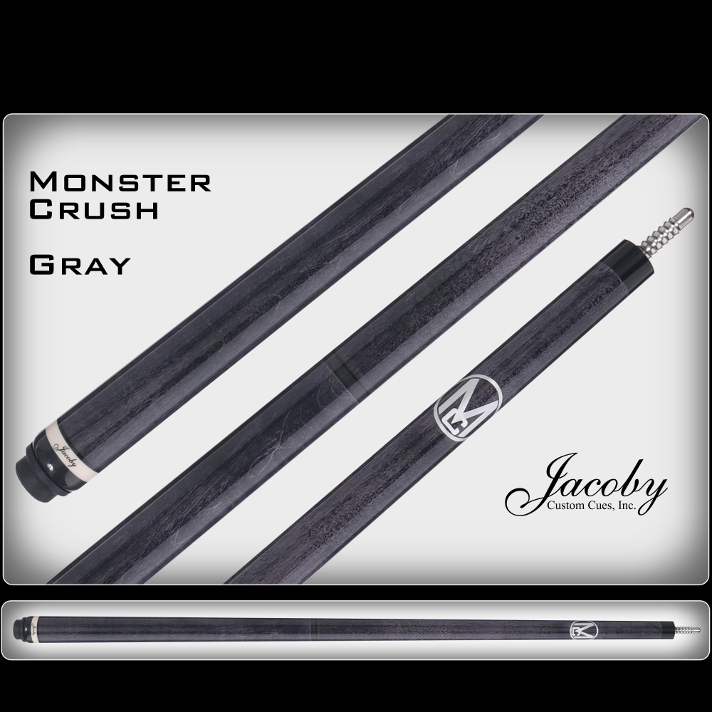 Introducing the latest design from the minds that brought you the BlaCkOut, Heavy Hitter, and Feather Weight break cues… The Jacoby Monster Crush! The intelligent design is aimed at the player who doesn’t only want to break the rack, but completely destroy it. Additional weight can also be added to make it comparable to even the heaviest of break cues. The engineered Dual Component Assembly combined with the Jacoby V4 Cut-Break Carbon Shaft & Horo Hard Tip promotes focused energy transfer greater than any other break cue on the market. Go get yourself a Monster Crush before a Monster Crush gets you!